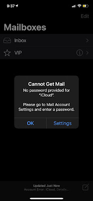 This is happening across multiple email address and different mail servers like gmail, outlook,AOL, AT&T keeps on saying “Can not get mail, No Password provided”. The issue is not limited to mail server only but also when changed iCloud password. Despite deleting mail app and reinstalling it, as well as signing out of iCloud on iPhone, the iPhone keep showing the error message that "No password provided for 'iCloud'.