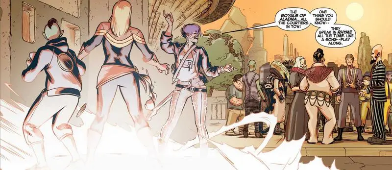 In the comics, Captain Marvel visits a place named Aldana, where people talk in rhyme and song, in “Captain Marvel (2014) #9” from 2014, gaining some experience with it. This planet might be the perfect method to broaden the scope of the MCU’s galactic plot, especially because Carol and company will probably spend more time traveling the universe in her second solo film.